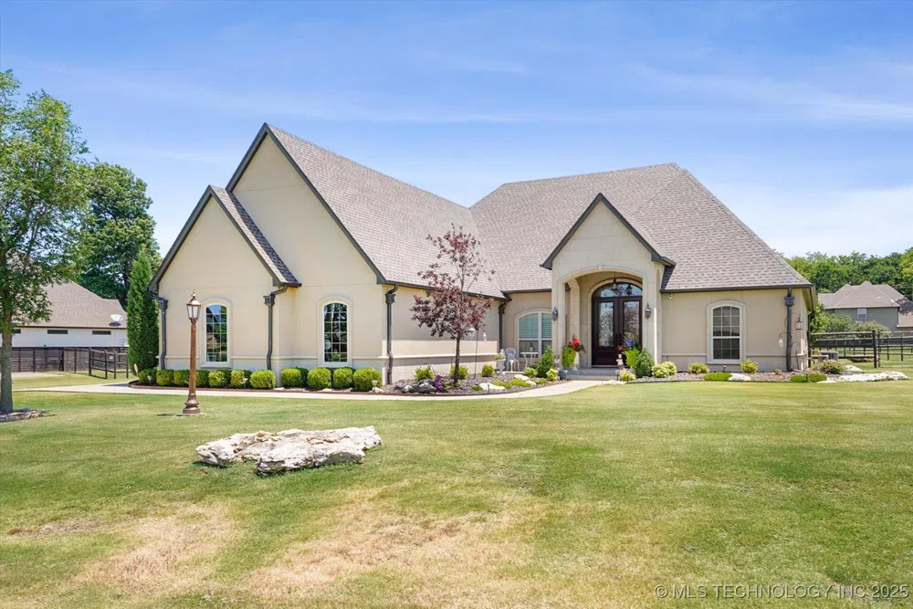 Welcome to 19205 E Twin Creeks Drive, a stunning custom-built home in the desirable community of Stone Canyon in Owasso, Oklahoma. This elegant residence, built in 2016, offers luxurious living space, blending modern amenities with timeless design. Inside, you'll find four spacious bedrooms, all on the 1st level, each with its own en-suite bathroom and large walk-in closet, ensuring comfort and privacy for everyone. An additional half bath is conveniently located next to the expansive upstairs game room. The open floor plan seamlessly connects the gourmet kitchen, featuring a generously sized island, to the inviting living area, making it perfect for gatherings and entertaining. The large backyard is designed for relaxation, entertaining and enjoyment. The space includes a pergola, a large cozy firepit, and plenty of space for outdoor activities. Whether hosting a summer barbecue or unwinding under the stars, this outdoor retreat offers endless possibilities. Located in sought-after Stone Canyon neighborhood, this home combines space, style, and functionality to provide an exceptional lifestyle. Don’t miss the opportunity to make this extraordinary property your own—schedule a tour today!